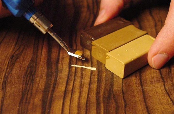 For the elimination of chips and dents on the surface of the parquet flooring there are various means. You can use the pre-melted putty-melt for recovery work. It is poured into a previously cleaned chip, and then, after solidification, all excess is removed and polished with fine emery paper.