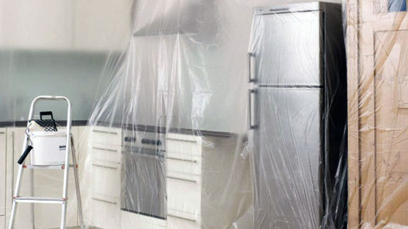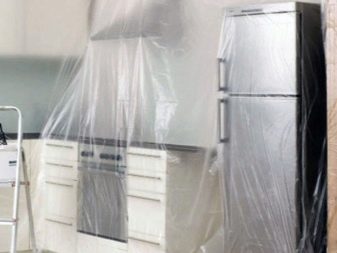 - If it is not possible to free up the room, then you can cover the objects with a film, to fix which you will need construction tape. In order to surely protect the interior from pollution, you need to put newspapers or large sheets of paper under the film.