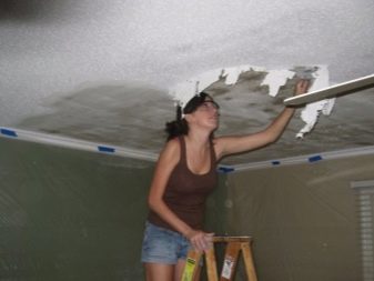 Repair of the ceiling usually begins with the removal of the old coating, but not all materials are easily dismantled. For example, to remove whitewash you need to spend a lot of time and effort. This is a dirty and long-term job, although not very difficult, if you know the details and follow the plan.