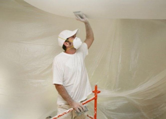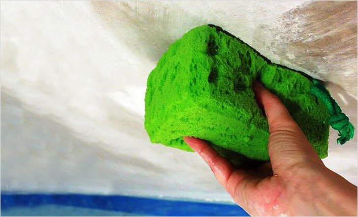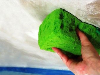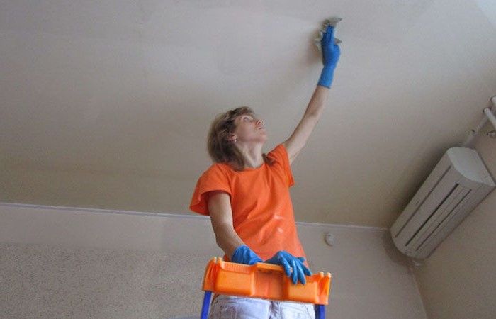 - After completing work with a spatula, rinse the ceiling with warm water using a large sponge. The sponge needs to be squeezed out so that dirty water does not run off the walls, and there are no puddles on the floor.