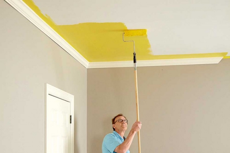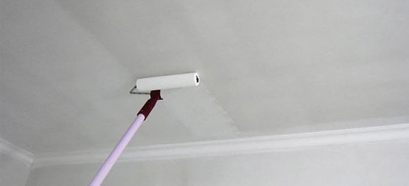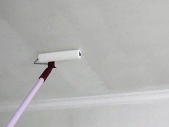 - Paste can be made on the basis of flour or starch. The prepared adhesive liquid is applied to the ceiling with a roller, which helps to cope with painting or a sponge.It is important not to miss the moment when the paste starts to set. It is necessary to quickly take up the spatula and remove the old coating.