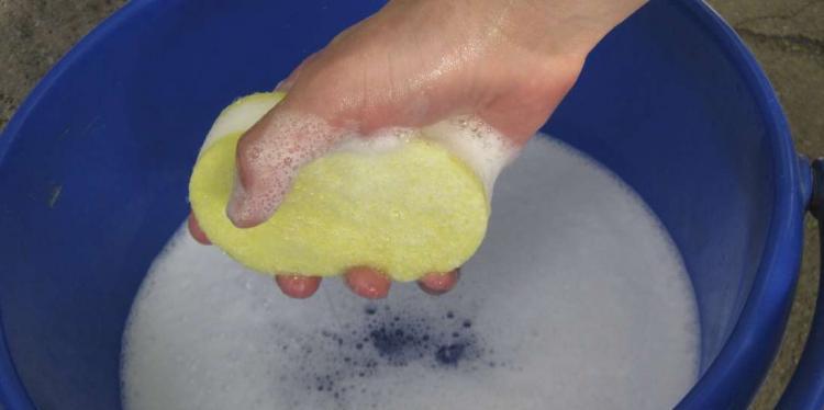 - Soap solutionwhich can be used instead of ordinary warm water. This tool is more suitable for removing a small layer of decorative material. For its preparation it is necessary to take 2 tbsp. spoons of ordinary laundry soap, previously rubbed. This component can be replaced with a powder that is created on the basis of soap. Also, take 5 tablespoons of baking soda and dilute it all in 10 liters of hot water. The resulting cooled and filtered solution with a sponge rubbed the treated surface. We leave whitewash for swelling, after which it is easily removed with a spatula.