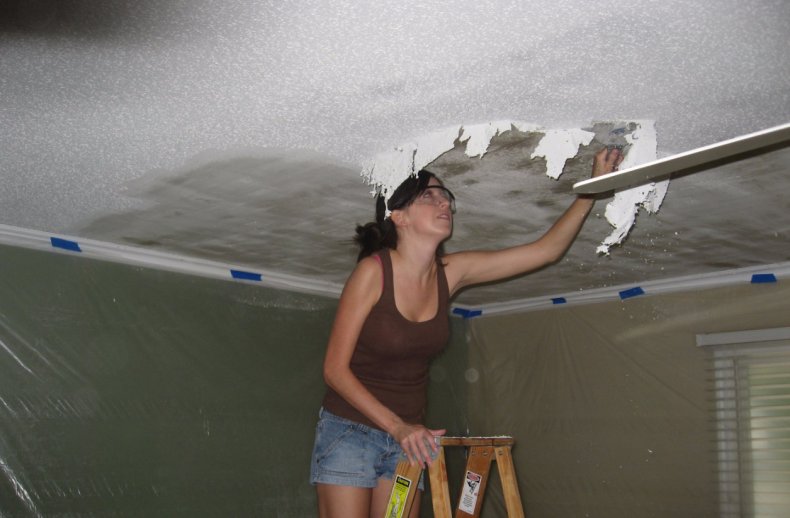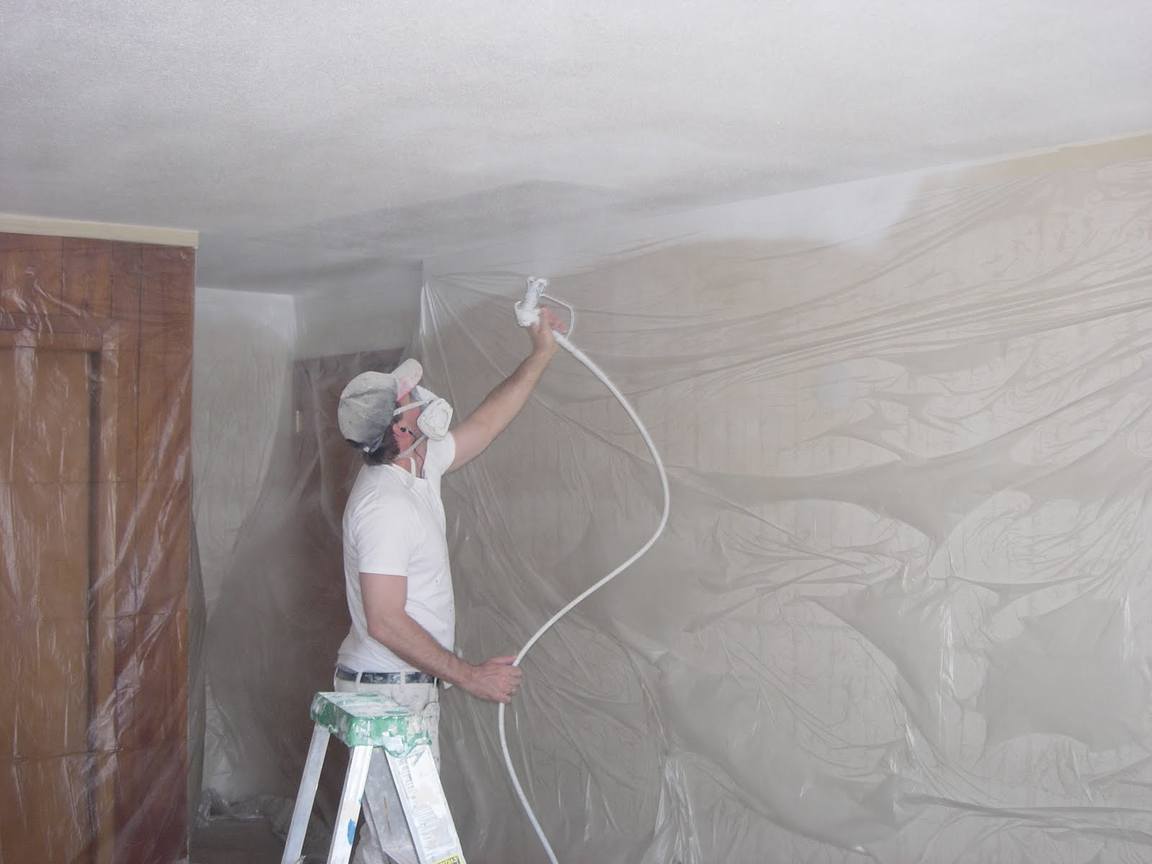 - Standing on a stepladder or any other construction, we spray the selected product or water onto the surface. When applying the product, gaps should be avoided, but the ceiling should also be wetted abundantly.