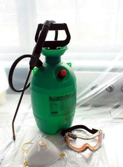 - Special construction toolwhich is sold in most hardware stores. It has a glue base, applied to the surface by spraying. You need to wait until the mixture is absorbed and dry. After this whitewashing is easily removed with a spatula.