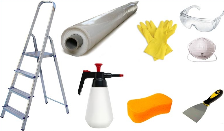 Further work on dismantling whitewash from the ceiling will require tools which it is desirable to prepare in advance: