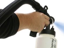 If you have a brush or bast, it certainly will not spoil the work, but the process will be slow, especially when processed with shakrilom. You can use a vacuum cleaner, but in this case it is very difficult to ensure that the rest of the area does not get dirty and the decorative plaster does not fly away. Experts recommend the use of the apparatus KRDP-3. This is a manual paint sprayer that will help you cope with any difficult work associated with finishing.