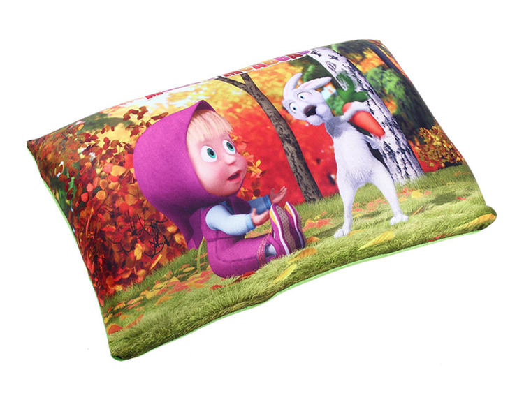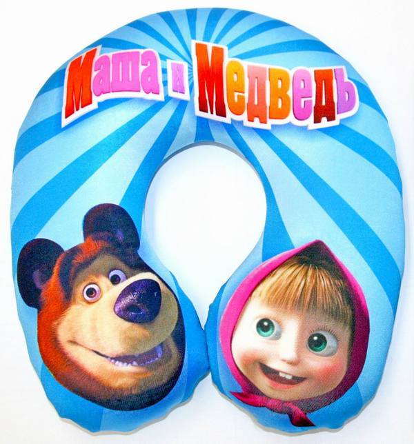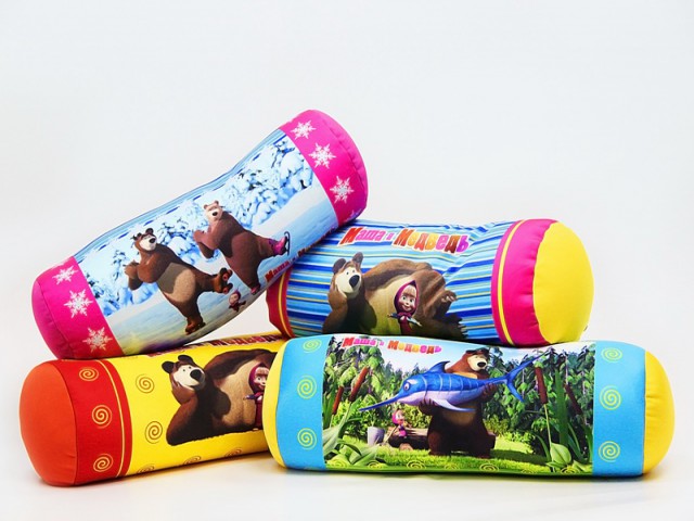 - Images from the popular cartoon "Masha and the Bear" can be placed on various form of anti-stress pillows, for example, in the form of a heart, a square or a circle. Such a textile product will perfectly fit into the interior of a children's room for both a boy and a girl.