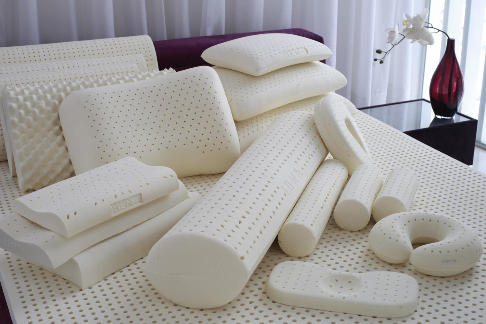 Latex is a hypoallergenic and resilient filler that has gained popularity among consumers. The pillow is a monolithic form of rubber, in which there are openings for the free flow of air around the perimeter.