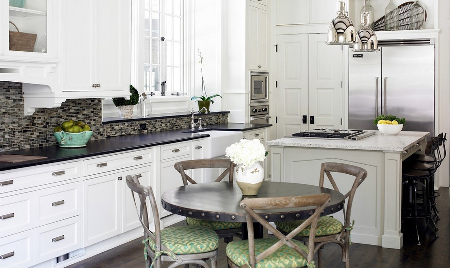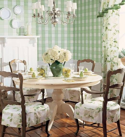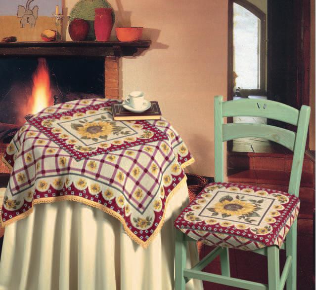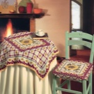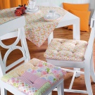 Products in the technique of quilting appropriate to the kitchen, patio, veranda. Often used in the design of country houses, garden arbors and open pavilions.