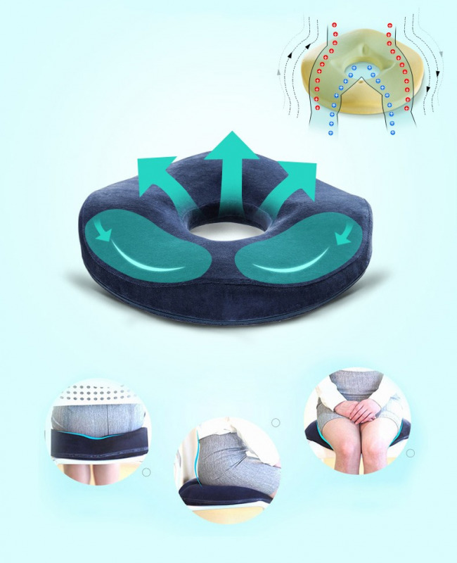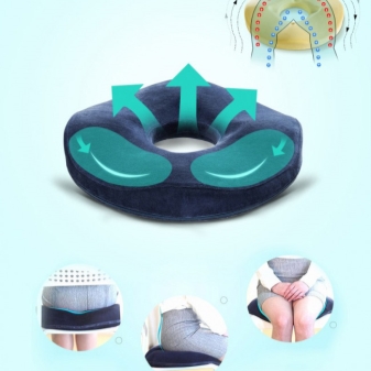 Products-laying on the chair minimizes the load on the spine, provides blood flow to the pelvic organs, relieve the urinary system. In addition, pillows normalize the blood circulation process and correct posture.