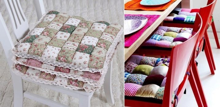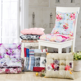 Decorative products can be made in the form of a thin mat-mat on a chair, bench, sofa. Soft textile cushions are usually filled with foam. For serious long life elasticity is provided by synthetic fillers, latex or natural ingredients. Popular pillows with buckwheat husks or coconut shavings.