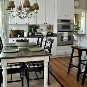For kitchen stools, the perfect solution is to use soft textile pillows.You can sew them yourself, order them in the studio or buy ready-made options. The main thing is that they fit into the general ensemble and create comfort. Pillows in the kitchen can be combined with a tablecloth, curtains on the windows, towels and oven mitts. A necessary condition in this case is the use of materials that are easy to clean.