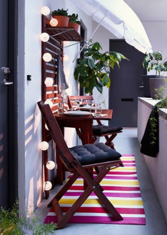 For the balcony bench is appropriate warming pillow. In the autumn cool evenings it is pleasant to drink hot tea while sitting on it.