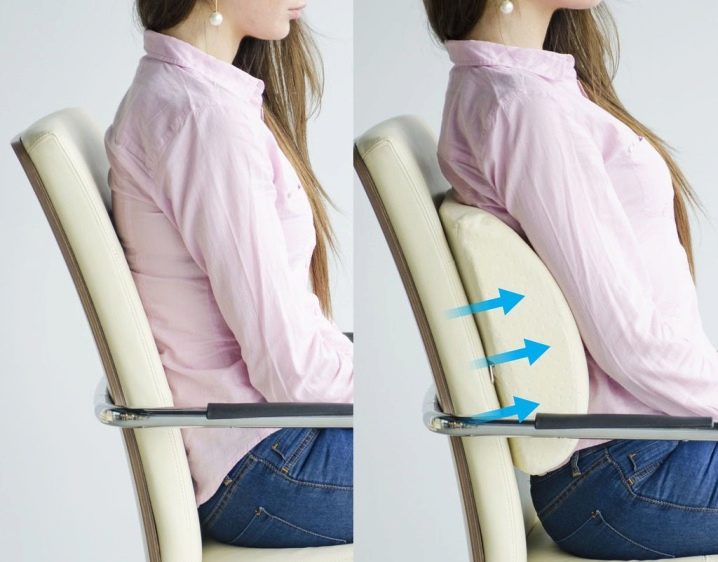 In order to support the lower back and ensure perfect posture, cushions for correction, which are mounted on the back of the chair, will help. Tired back is selected the optimum position, reducing the load and the associated pain.