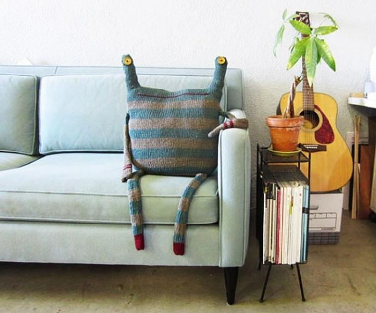 - Cushion for the floor in the form of a living stone. It was created by the famous designer Stephanie Merin. This surreal package will complement your eco-friendly interior. It is made in the form of coastal pebbles. With this accessory, you can easily travel back to the sea coast. Such a set can be decomposed in different ways, it all depends on your mood.