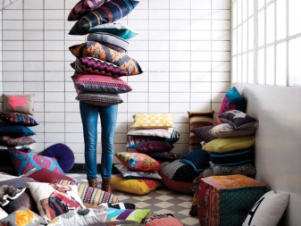 If you choose pillows from holofiber as interior ones, then it is better that the filler in them be combined with foam rubber. Such products are more dense and keep their shape better.