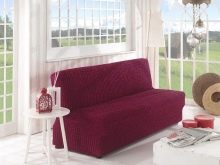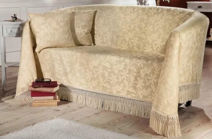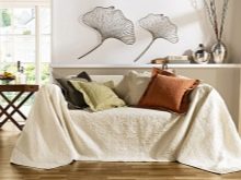 Some designs are designed not only for folded, but also unfolded furniture. For example, you can pick up enough wide capes on a double sofa: this will give a transformable model bed a neat look. Bed covers are small, medium (standard) in size and large, resembling a rug or a thin blanket hanging from the sides of the sofa and chairs. Therefore, the size of capes can be universal or non-standard.