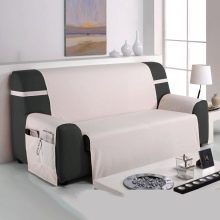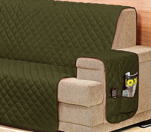 Those who appreciate every inch of useful space, notes the relevance of capes with details for the armrests, equipped with pockets and sections. Such models can be used for sofas with wide sides, having the opportunity to organize the working space, putting useful stuff into the pockets.