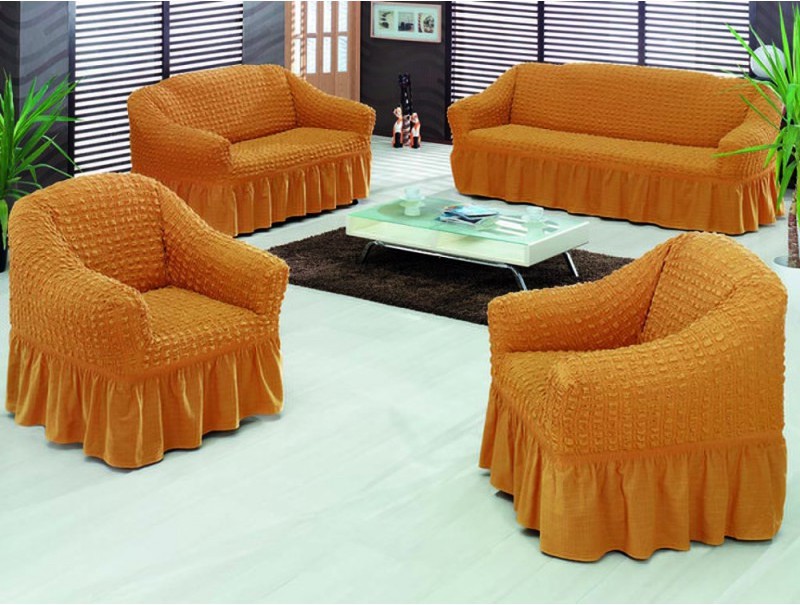 In spite of the fact that capes on upholstered furniture are produced all over the world, the most high-quality and stylish today is a kit made in Turkey and Italy. The task of each brand is multifunctional covers on upholstered furniture, because the attention of buyers depends on it. Products should be beautiful, practical, useful and fashionable, therefore in production they use specially designed textiles with a unique print, quilted texture, imitation of relief, openwork, additional layer.