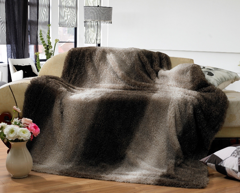 On average, fragmentary capes on a sofa can be 50 x 160 cm. Fur blankets have a larger area: their parameters are 150 x 190, 180 x 200, 200 x 240, 220 x 210 cm.