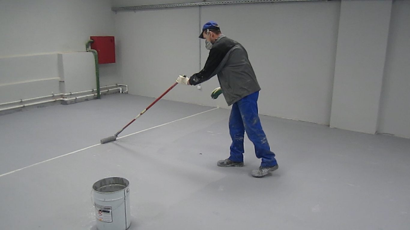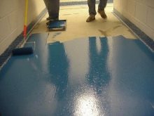 - Commercial premises are characterized by intense loads. Stop your choice on epoxy paint, which should be applied in 2 layers.