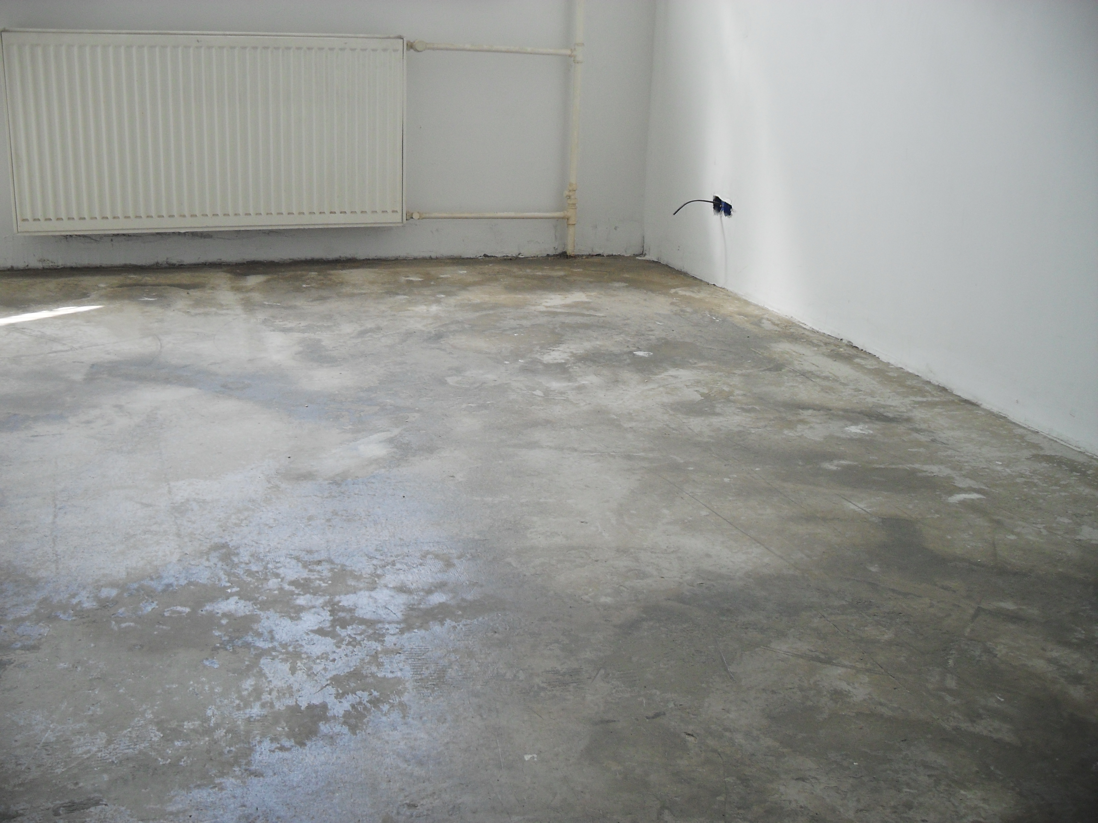 All dried dust must be removed from dried concrete. For better grip, the concrete floor is sandblasted.