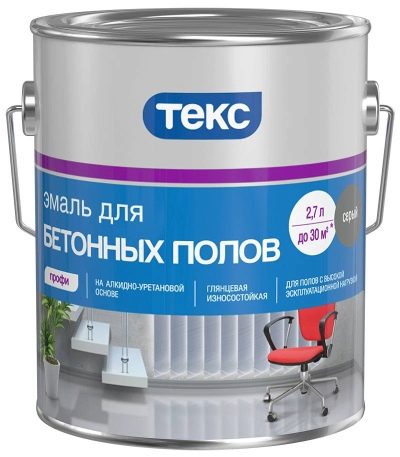 Epoxy enamel is resistant to moisture. The composition does not deteriorate from exposure to aggressive chemicals. Good tenacity with concrete and invariance of decorative properties over time makes the paint attractive to the consumer. Apply a composition of at least 2 layers with an interval of 12 hours.