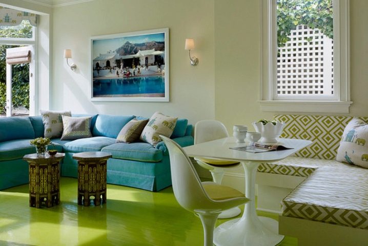 Remember that you can improve the decorative properties of the floor with the help of glitter (spangles) or flock. The main landmarks in the selection should be resistance to external influences and life.