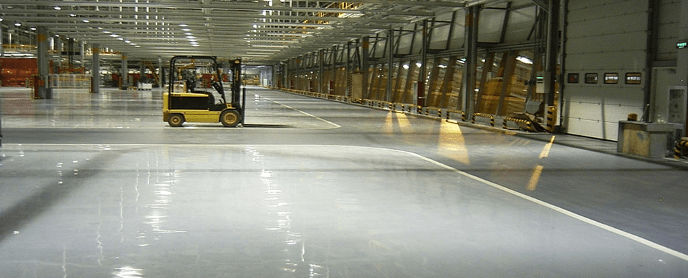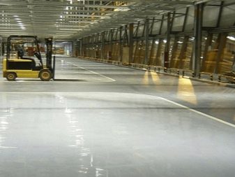 - Reinforced concrete coatings can often be seen in such rooms where a significant load is placed on the floors (such buildings include warehouses, machine parking lots, factory workshops).