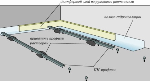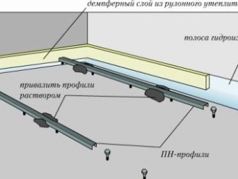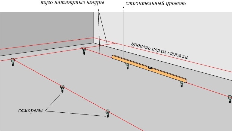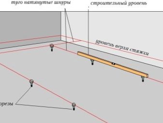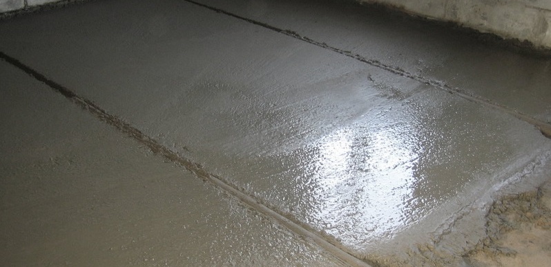 No less important procedure is the formwork. It is a division of the room into equal rectangular areas that could be filled in at one time. To designate these bases, guides are used, which are fixed with cement mortar. They must be strictly on the same level so that the floor is properly filled.