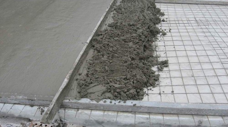 After pouring the mortar into the formwork, the mortar must be carefully leveled with a spade to compact the material and force air out of it. In order to avoid the formation of voids during drying, it is necessary to grind those places where the heavy fractions of the composition have dropped down and irregular areas have formed instead of dried moisture.. This procedure can be carried out a day after pouring concrete.
