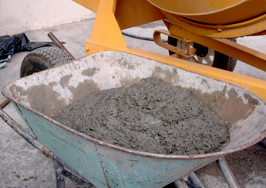 After the need to pour the mixture. Ready-made compositions immediately poured into the formwork. To manually prepare the concrete mix, you must mix the sand, gravel, water and cement brand M400 or M500. Two parts of sand are thoroughly mixed with 4 parts of rubble, 1 part of cement and 1⁄2 of water in a concrete mixer.