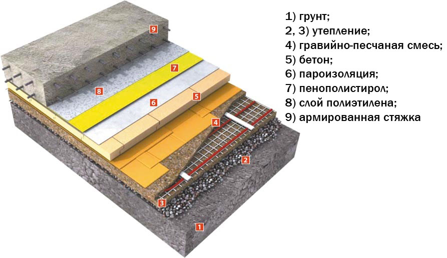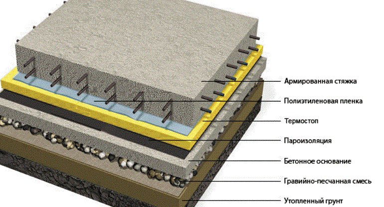 In residential buildings, insulated concrete floors are often laid, the base of which is the ground.
