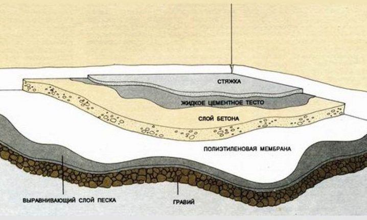After the base has been prepared, it is necessary to sequentially install all layers of the concrete floor. Mounting technology has the following steps.