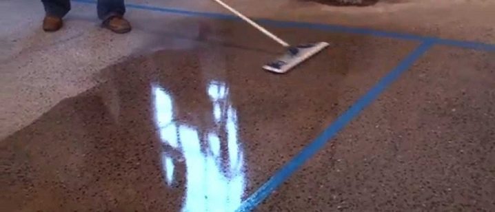 This solution should be applied in the process of hardening of concrete, mixing it with the top layer.