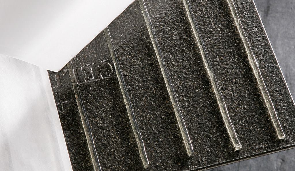 - Celenio ComforTec. This method of laying on the glue, which in the form of strips is applied on the wrong side of each tile and covered with a protective film.
