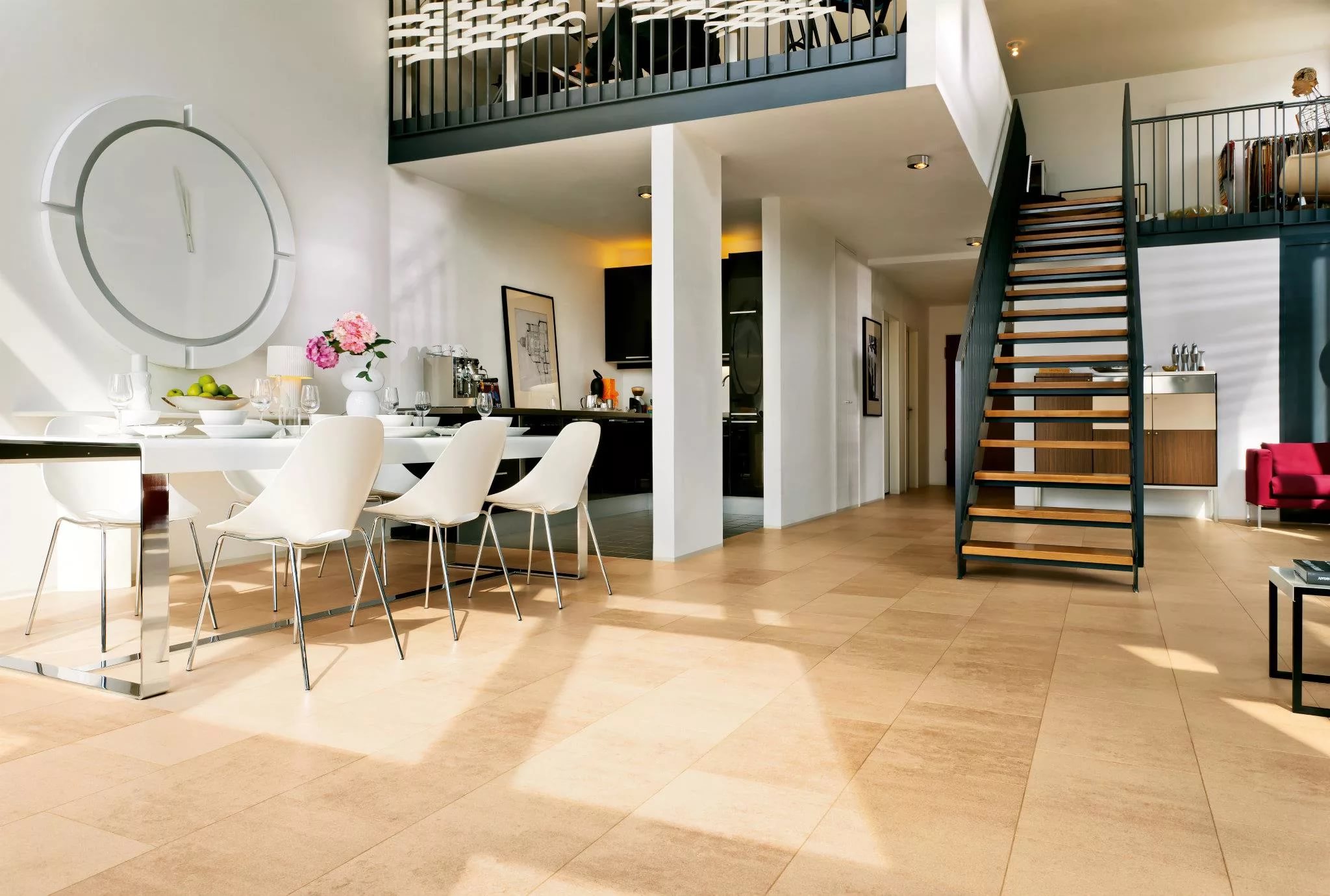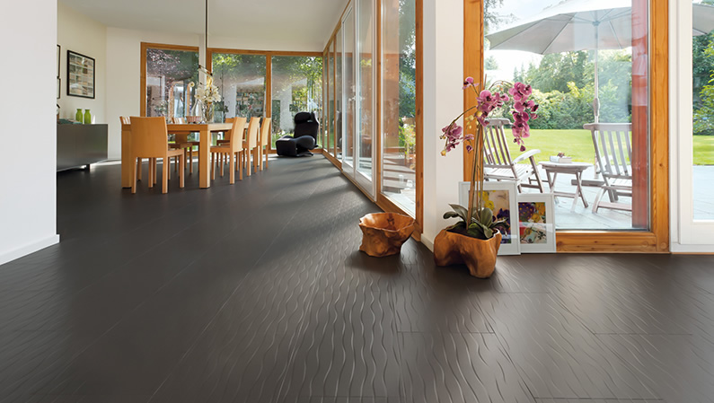 When looking at the laid Celenio tiles there is the impression of a stone, concrete, leather or even papyrus coating. This is due to the special surface treatment of the board, which does not at all resemble a wooden product. Due to this, there are additional opportunities for interior decoration, non-standard supply of the “stone” floor in such rooms as a bedroom or living room.