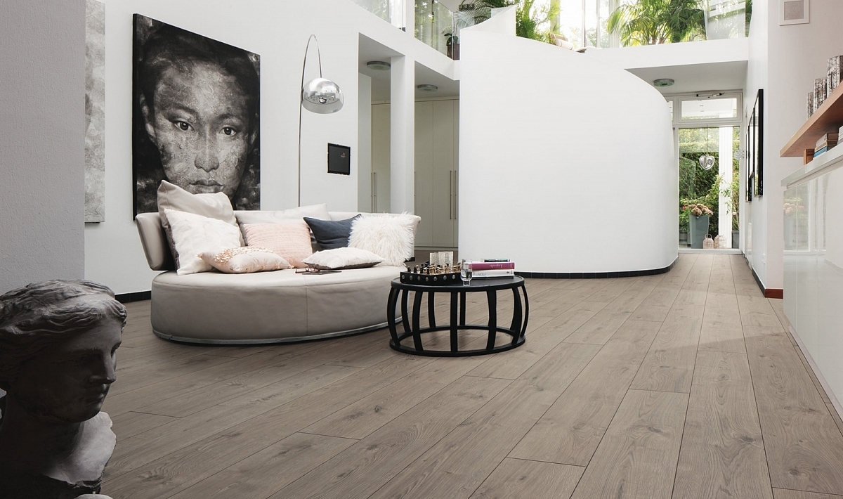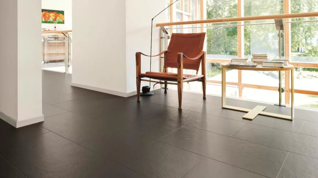 - Atrium. This collection offers a rustic "slate" design. This is a charming, elegant and timeless material with a calm color. Imitation of the stone surface gives the unique uniqueness to the living space. Particularly pleasant is the fact that in contact with such a floor there is not a cold stone, but a warm tree.