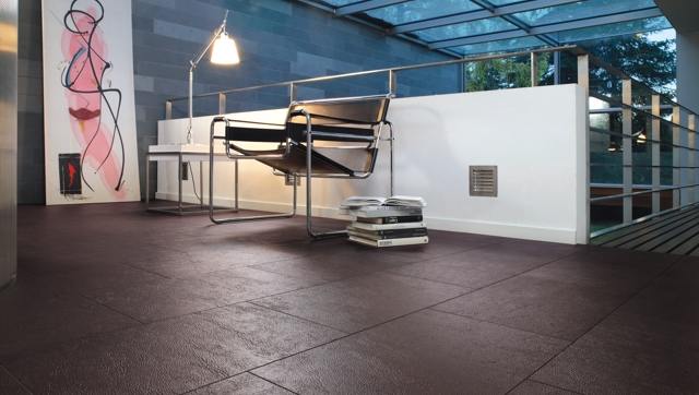At the same time in some of the areas, for example, in collections Atrium and AthosThe classic variant of laying the floor tile on glue is also proposed, in which the adhesive coating is applied completely to the entire surface from the wrong side. This option can be convenient in those areas that are experiencing increased load, for example, in the corridors.