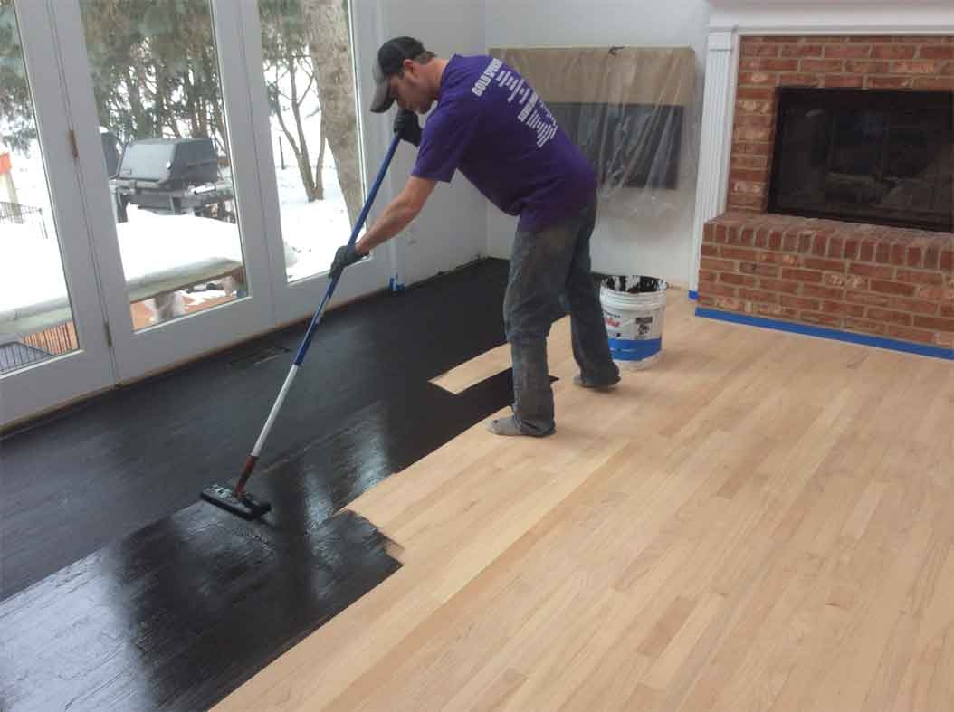 In order to paint the floor with varnish or paint, you must wait until the soil is completely dry. After that you should protect areas that are not subjected to staining, painting tape or paper.