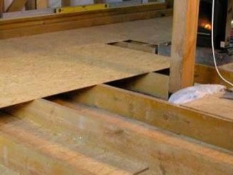For laying on logs set in increments of 50 cm, 18 mm is considered sufficient plate thickness.If the distance between adjacent lags is 10 cm longer, a large thickness of 20 mm is required. OSB plates are made by extrusion using a special adhesive. They are durable, do not rot and crack. Floors laid on sheets of OSB, do not creak when walking.