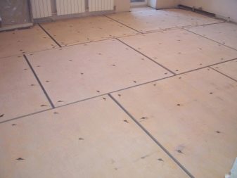 When laying under the topcoat is performed with sheet building material (fiberboard, OSB, plywood), it is attached to the base with self-tapping screws. Mounts should be located at a distance of at least 20 mm from the edge of the sheet with a pitch of about 150 mm. The caps of the screws should be embedded in the body by 3 mm. The resulting grooves should be puttied. No filler finish at the attachment points will be adversely affected. And after some time, traces of poorly performed work will appear on it.
