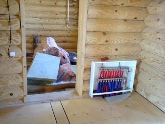 The abundance of engineering structures in the premises does not look aesthetically pleasing, so it is customary to hide them under the floor. The space between the lags allows you to cover most of the pipes. If there is an underground or basement under the draft floor, you can install an electric water heater, and you can equip a gas boiler room. Especially relevant location under the floor of the heater for a small shower.