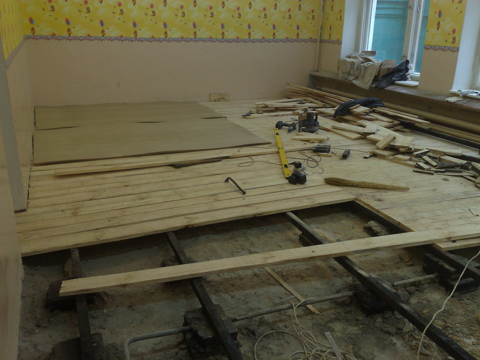 If it is necessary to re-floor the floor, the worn out top coat is removed, the condition of the substrate is checked and, if necessary, repaired. Lags with flaws should be replaced, as well as other components of the base affected by rot or fungus. During the overhaul of floors, they change wetted or packed insulation, as well as insulation.