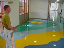 - Epoxy coating It gained the greatest popularity in the production of chemical aggressive reagents. Differs in the increased durability, resistance to attrition and immunity to various chemicals. Can be used in the private sector. The disadvantage of this floor is considered a low level of its elasticity.