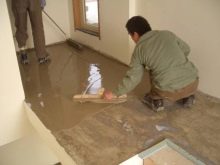 - The repeated smoothing of the self-leveling mixture and the adjustment of the thickness of its layer should now be carried out after pouring out each new portion until the entire floor has been filled.