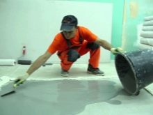 It is necessary to carry out the priming of the surface with a special wide roller followed by leveling with a spatula. It is even better to give preference to self-leveling compounds.It is better to use with them not ordinary beacons, but rappers and squeegees. Diluting self-leveling mixtures is strictly according to the instructions, as each manufacturer will have its own recommendations on this.