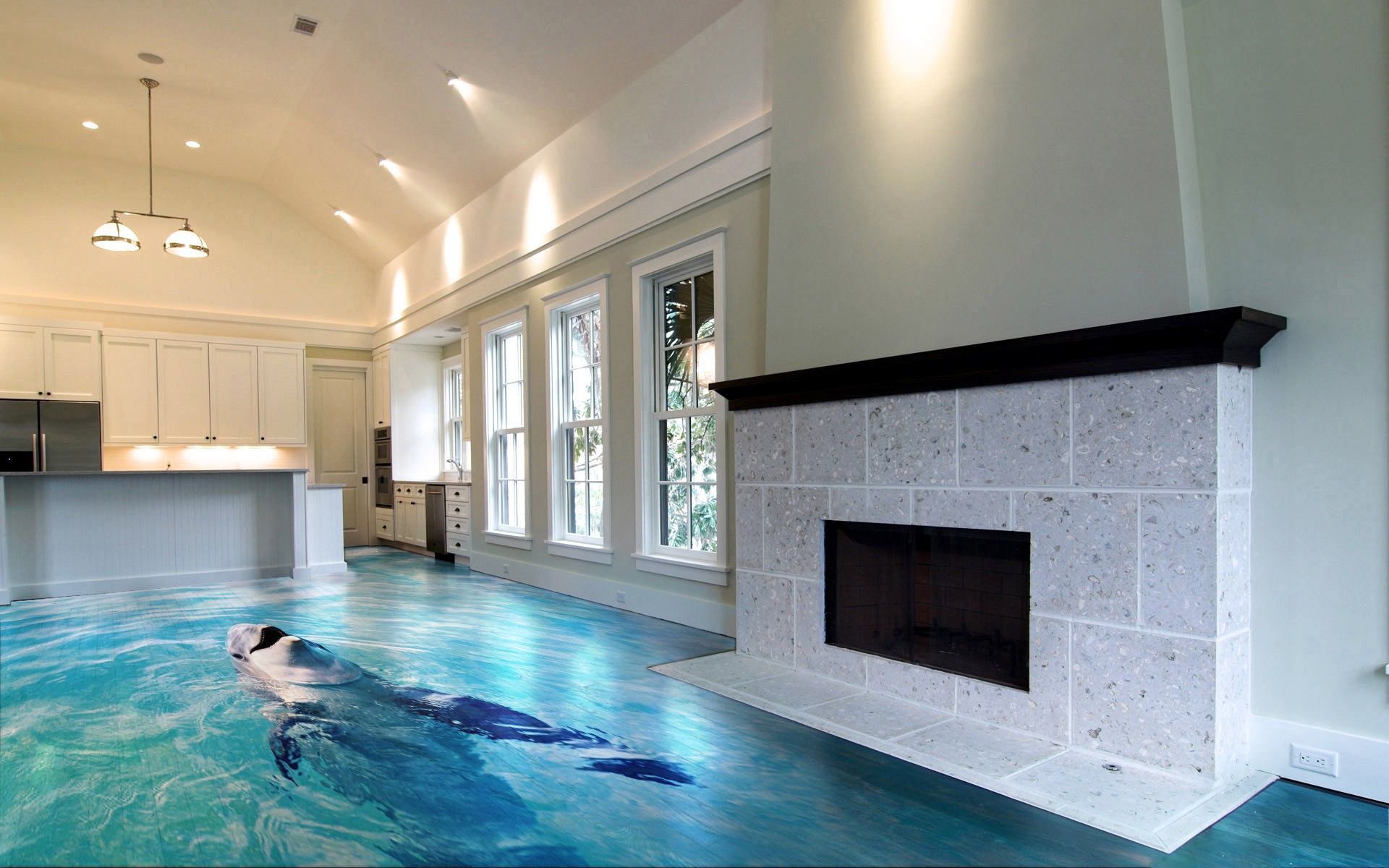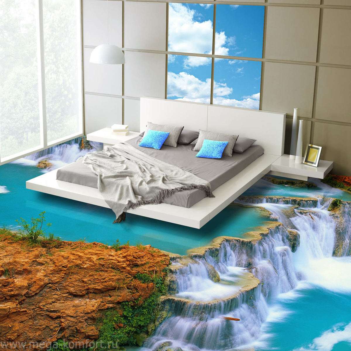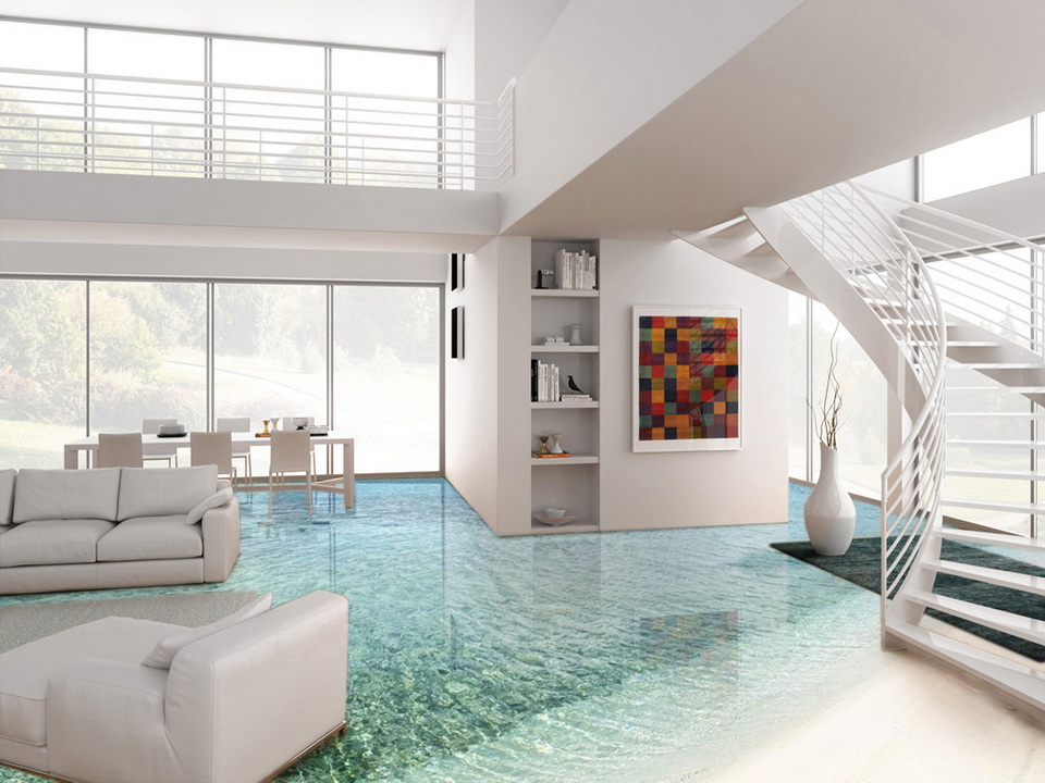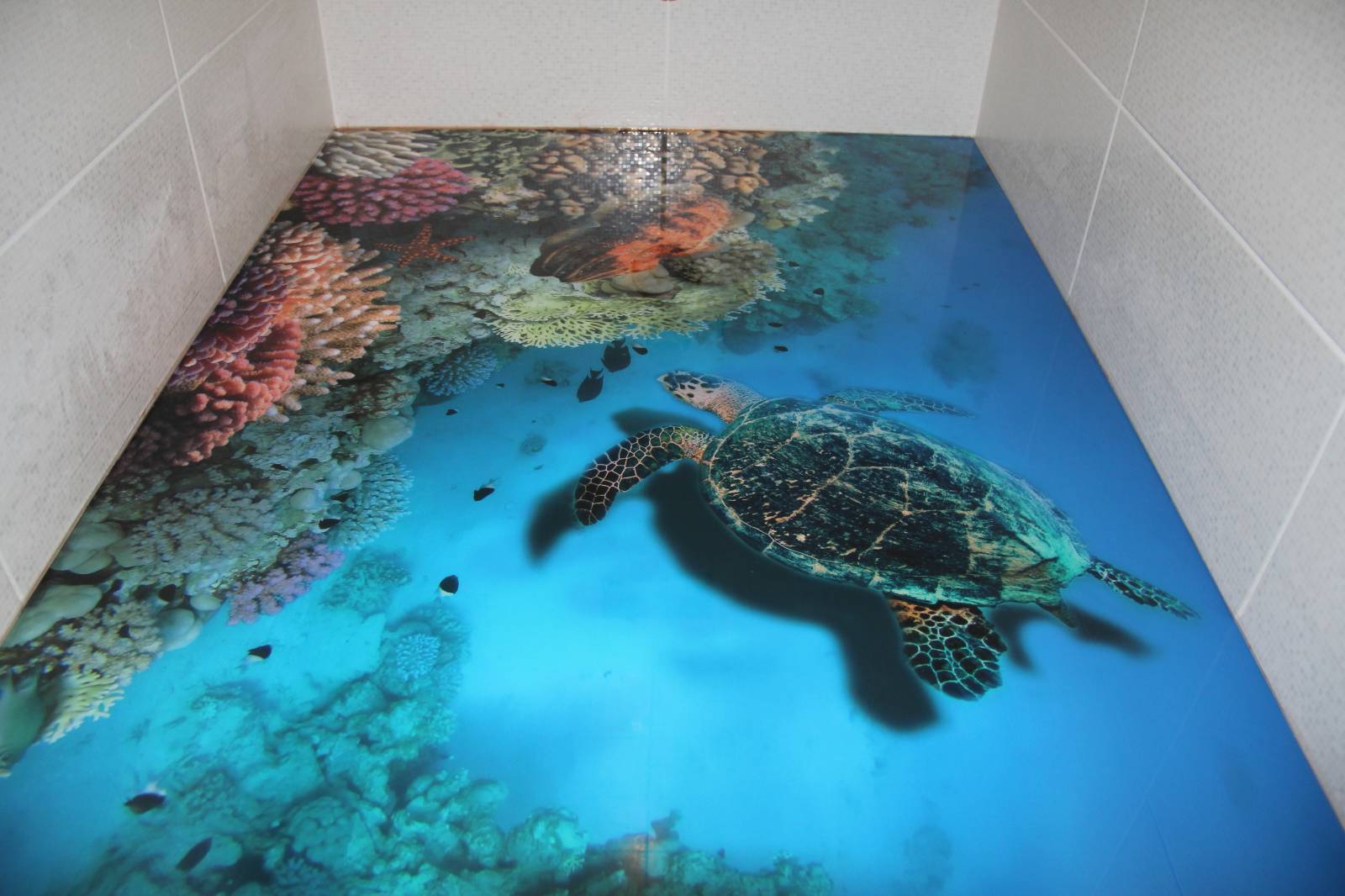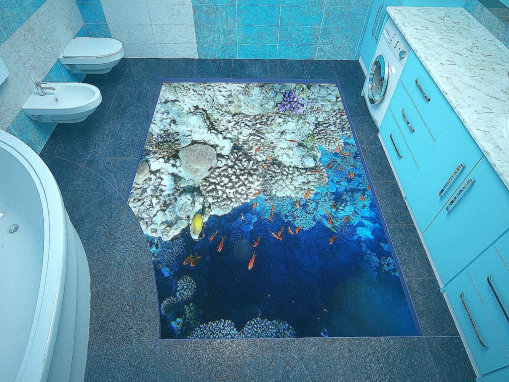 - Another great example of a 3D floor design. Finding yourself in a room with such a floor, imagine yourself on the ocean.This flooring option is ideal for a bathroom.