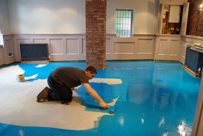 The further procedure will depend on what kind of finishing coating will be used: single-colored or multi-colored, with or without a pattern. In any case, it is necessary to grind the surface and degrease it thoroughly. Then from the farthest corner from the entrance begins to fill the final coating. Such work should be done as quickly as possible. It is best to use self-leveling self-leveling floors.