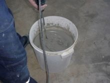 During manual pouring, the mixture is poured into a container with water and mixed with a mixer, a drill with a nozzle in the form of a whisk or manually until a homogeneous mass is formed within 5 minutes. The screed is then settled for 3 minutes and mixed again. It is necessary to avoid overflow of water and use only those proportions that are specified in the instructions. If a dry mixture or water is added to an already mixed and aged solution, then it loses its beneficial properties. The prepared mass should be used within 60 minutes.otherwise it starts to thicken.